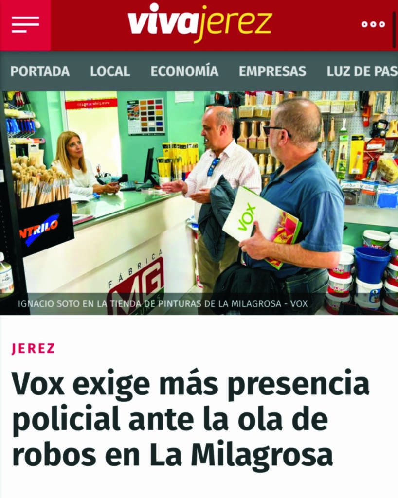 La reclamación de #VOXJerez sobre la seguridad en La Milagrosa es hoy #Portada en